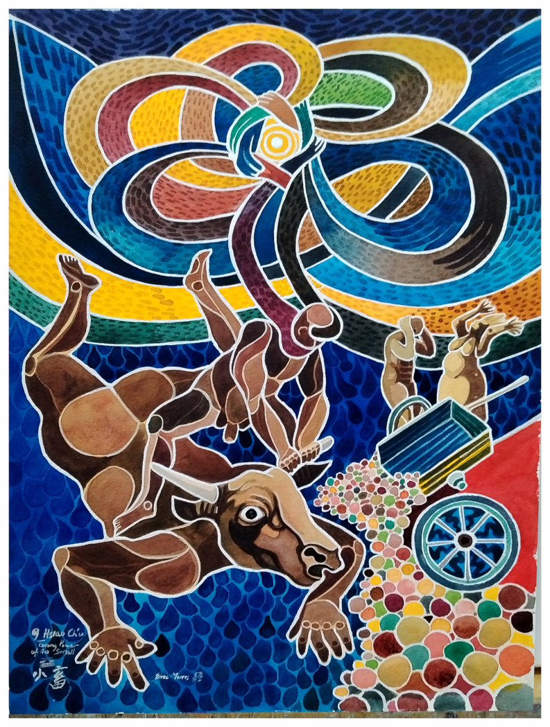 9, Hsiao Ch'u The Taming power of the Small, subdueing 297mmx 420mm 11.7" x 16.5" : A3 Medium: water colour Purchase & Information I Ching Gallery Copyright