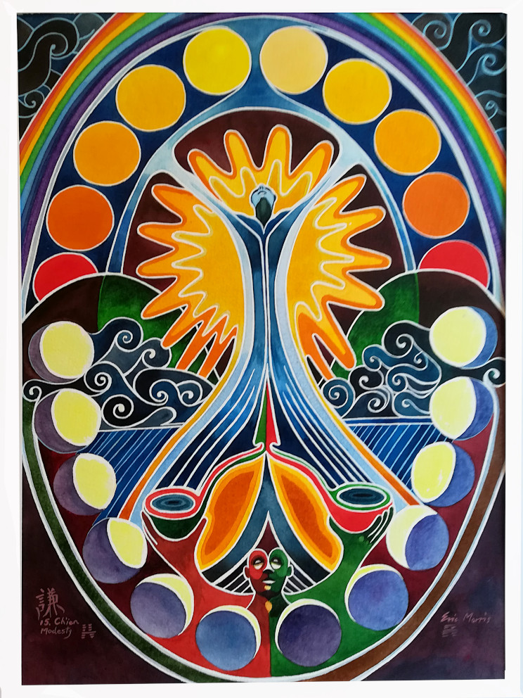 15, Ch'ien, Modesty carry things through Dimensions: 297mmx 420mm 11.7" x 16.5" : A3 Medium: water colour Purchase & Information I Ching Gallery Copyright Eric Morris 2025 ericwmorris@hotmail.com Click on image for individual page