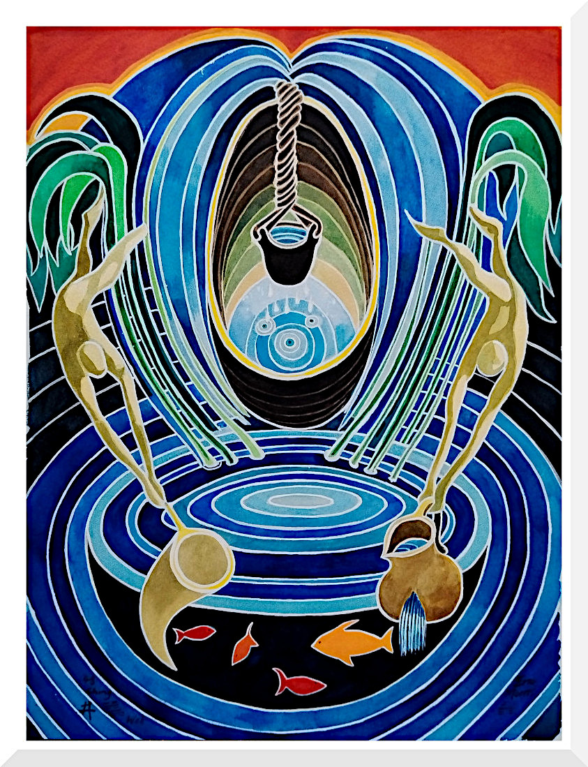 48: Ching:The Well)s superior men are oppressed Dimensions: 297mmx 420mm 11.7" x 16.5" : A3 Medium: water colour Purchase & Information Copyright Eric Morris 2025 ericwmorris@hotmail.com Click on image for individual page
