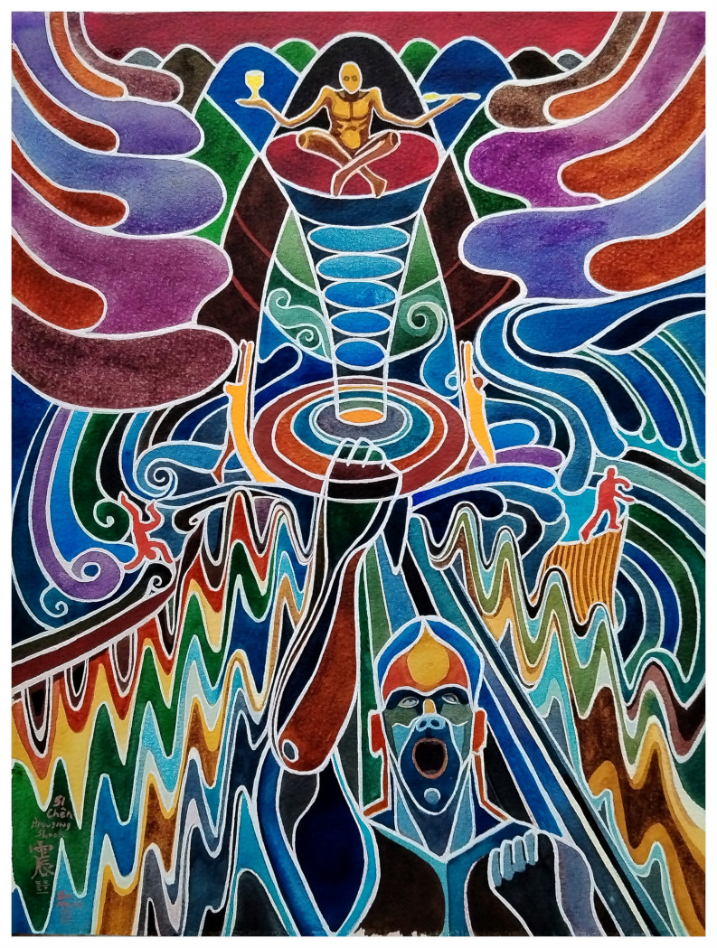 51:Chen:The Arousing(Shock ,Thunder) in conflict Dimensions: 297mmx 420mm 11.7" x 16.5" : A3 Medium: water colour Purchase & Information Copyright Eric Morris 2025 ericwmorris@hotmail.com Click on image for individual page